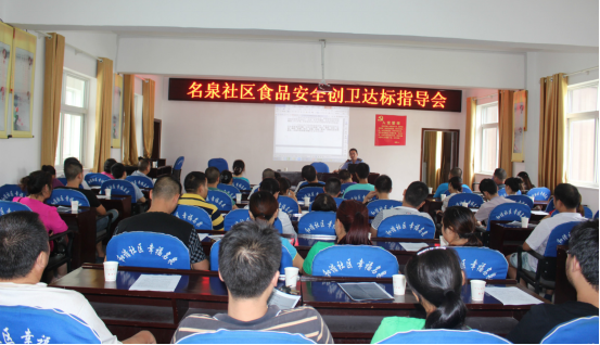 30日,名泉社区开展食品安全创卫达标指导会,邀请市、区食品药品监督管理局工作人员为辖区84家餐饮业主开展创卫达标知识培训与指导。