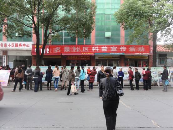 10月18日上午,市科技馆、区科协、区卫生局联合名泉社区在名泉路开展科普知识宣传活动,为辖区居民宣传普及科普小常识,并为辖区居民进行免费义诊。此次宣传活动为过往居民群众发放科普宣传材料2300余份,通过活动调动辖区居民对科普知识的热情,提升辖区居民的文化素养。