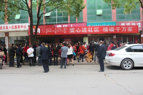 5月18日,名泉社区联合市义工联义工、武汉金田物业公司荆门分公司、荆门发源地美发店、阳光美发店的员工在名泉社区老办公楼前开展“爱心进社区,情暖千万家”活动,为辖区困难居民奉献爱心。