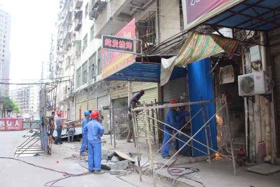 连日来,名泉社区沿渠路进行综合整治。掇刀石街道城管执法中队对名泉社区沿渠路上85处违规设置遮阳棚、雨棚进行拆除,规范店招店牌。区食品药品监督管理局对路段个体经营店开展专项整治,规范业主经营行为。另外,掇刀供电、电信、移动、联通等部门对杂乱无章的线路进行规范