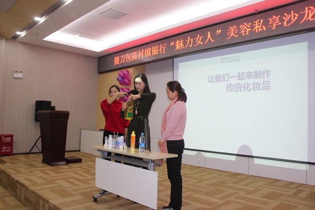 7日,名泉社区联合辖区单位掇刀包商村镇银行邀请美容讲师为辖区80余位女性同胞开展了一场专业、娱乐的美容养生讲座。