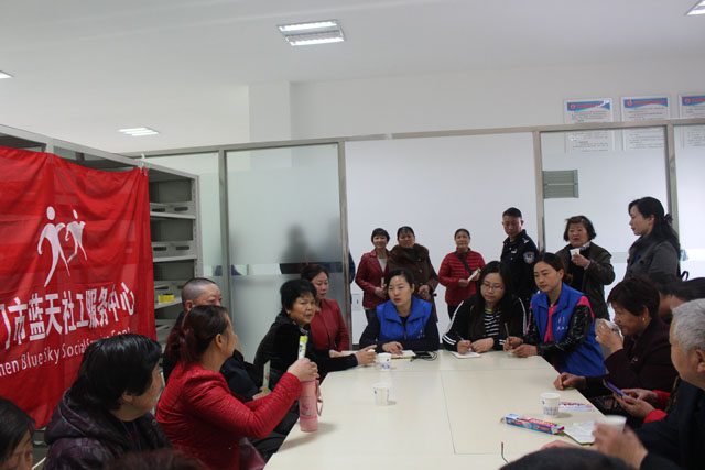 活动当天,蓝天社工的工作人员带领老年人玩游戏,参观服务中心,还邀请了部分老年人进行座谈,征求老年人对居家养老服务的意见和建议,以便更好地开展为老服务。