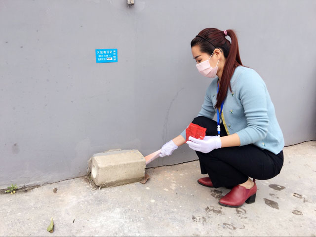 社区工作人员对辖区内设置在楼房墙角、车库、下水道周边、绿化带的毒饵站进行鼠药投放。同时向居民宣传灭鼠知识,告知投放鼠药的位置,并提醒居民要看护好小孩,管理好宠物,切勿靠近鼠药,以防误食中毒。
