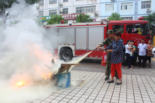 活动开始前,参加此次活动的人员纷纷在“人人把好防火关,有备无患保平安”的横幅上签字,预防消防隐患,从自我做起。活动中消防官兵用通俗易懂的语言结合社区的火灾特点,向群众们讲解了火灾的危害性、火灾如何预防、发生火灾后如何正确报警、怎样正确使用干粉灭火器材等消防安全知识。并示范教大家掌握扑灭初期火灾的方法,让参与活动的人员亲身体验如何正确使用灭火器,让他们过足了一把“消防瘾”。