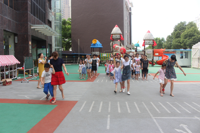 活动中通过荷花朵朵开的游戏接近了大家之间的距离,并分为三组。三组队伍开展了你投我接、螃蟹夹球、两人三足等互动游戏,游戏中让孩子与教师、幼儿园与社区的联系更加紧密,关系更为融洽。
