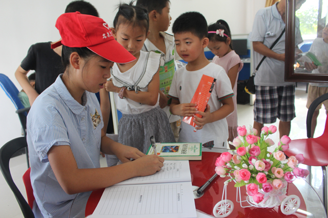 活动结束后,青少年纷纷到社区图片室借阅图书,社区小图书管理员王舒琪一一帮助大家查找和借阅到喜爱的图书。