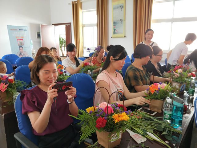 花艺老师通过现场讲解,向各位宝妈传授插花的艺术,现场手把手教学,让宝妈们体验亲自动手的乐趣,宝妈们也可以将花艺课堂上学到的插花知识充分应用到生活中,陶冶生活情操。