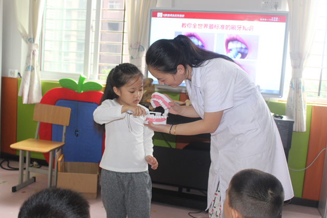 口腔专家先是给幼儿园的小朋友们讲解了食草和食肉动物牙齿有哪此区别、人类进化口腔的变化,又给大家讲解了儿童口腔保健知识,教大家如何更好地保护自己的牙齿、口腔不良习惯对牙齿的危害以及如何正确的刷牙等爱牙小知识,从小养成良好的口腔卫生习惯。
