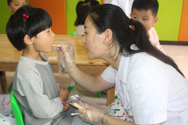 讲解结束后,口腔专家为小朋友们进行了牙齿健康检查。