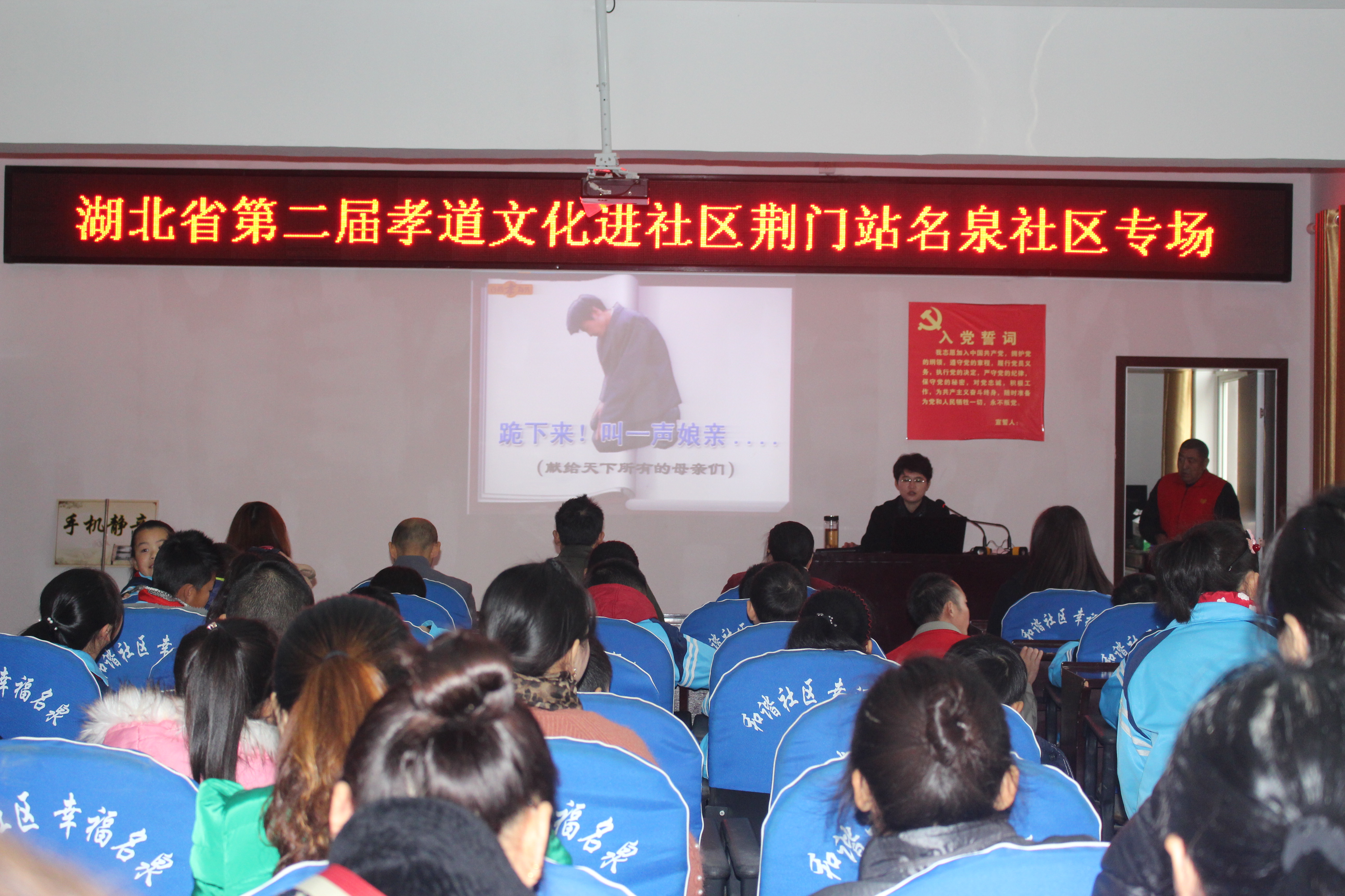 “妈妈,我错了,我再也不顶撞您啦!请您原谅我!”晚辈拉着长辈的手,忏悔自己做的不好,并表达感恩之情,父母也禁不住泪流满面,说出祝福的话语,两人激动的抱在一起......这是19日,名泉社区开展湖北省第二届孝道文化进社区活动上发生的感人一幕,还有一百多名居民在聆听讲座时一次次被感动得泪流满面。