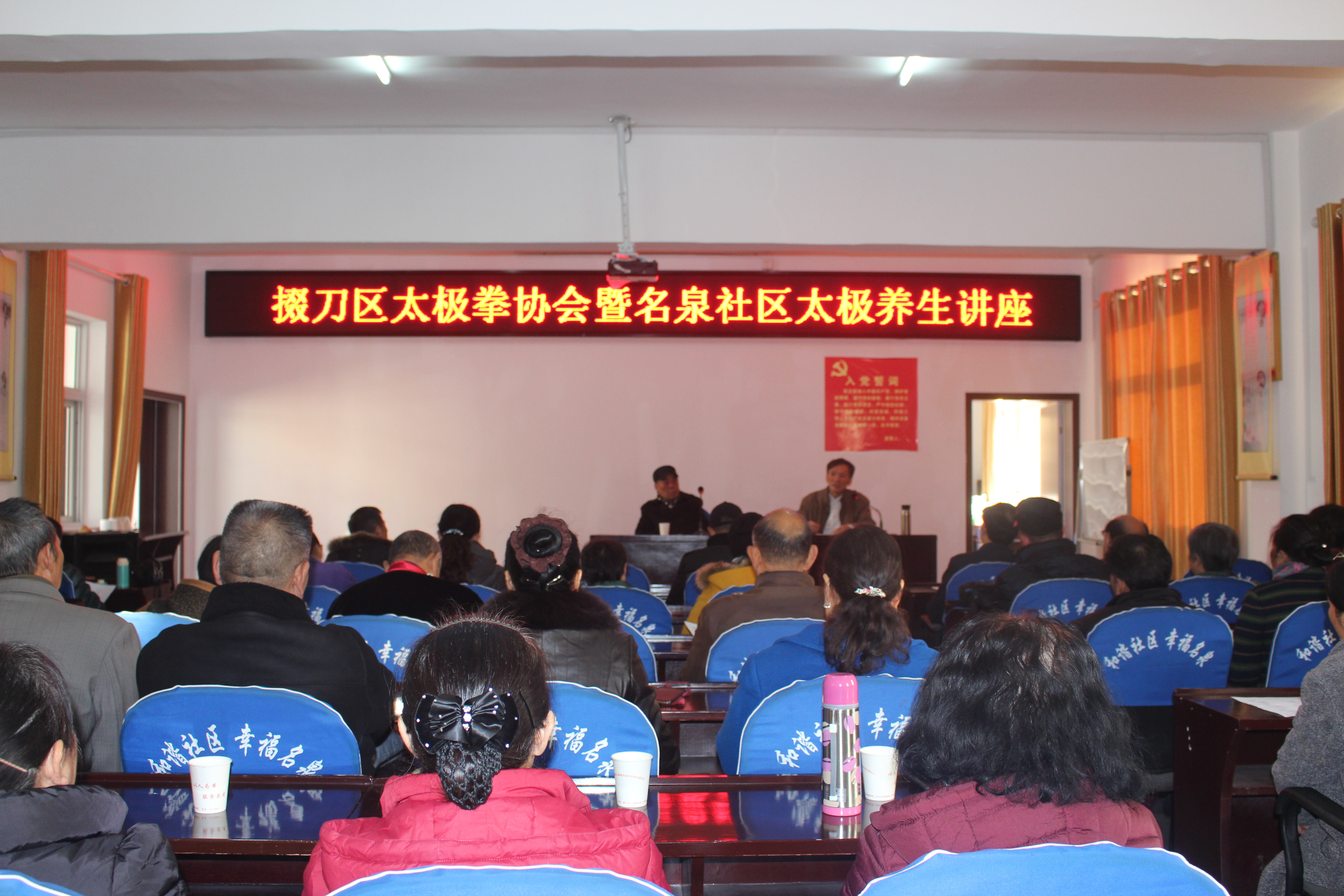 11月23日,名泉社区联合掇刀区太极协会开展太极养生知识讲座,辖区太极爱好者60余人参加了此次活动。