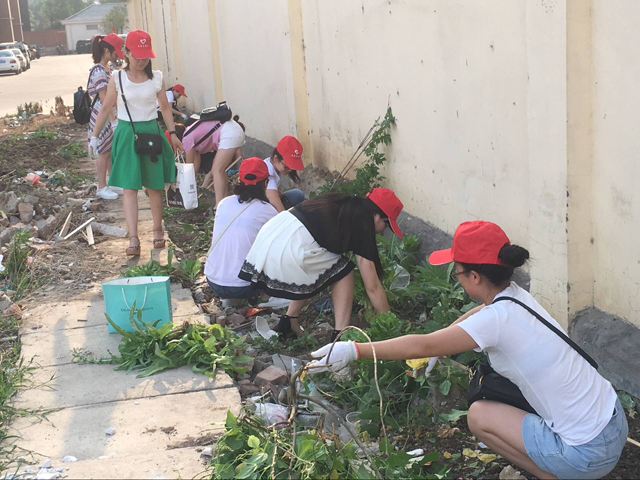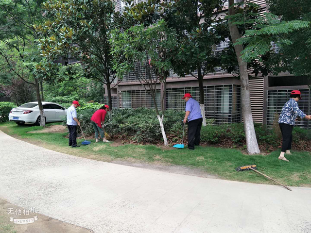 祥和佳园组织志愿者清理绿化区域杂草、白色垃圾