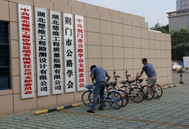 辖区单位每天整理公司门口共享单车,方便他人使用