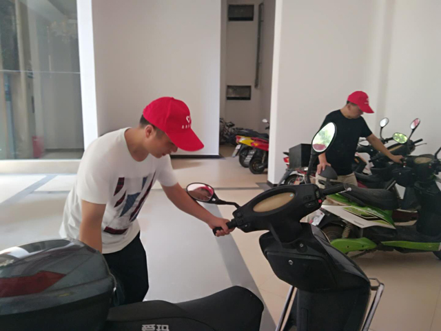凯旋湾小区志愿者整理居民摩托车