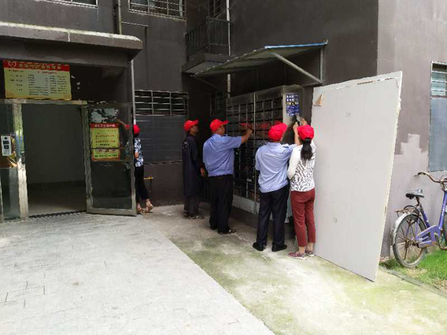 祥和佳园小区志愿者清除楼栋邮箱牛皮癣、清理楼栋杂物