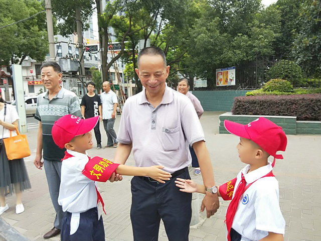名泉小区学生劝导行人遵守交通规则