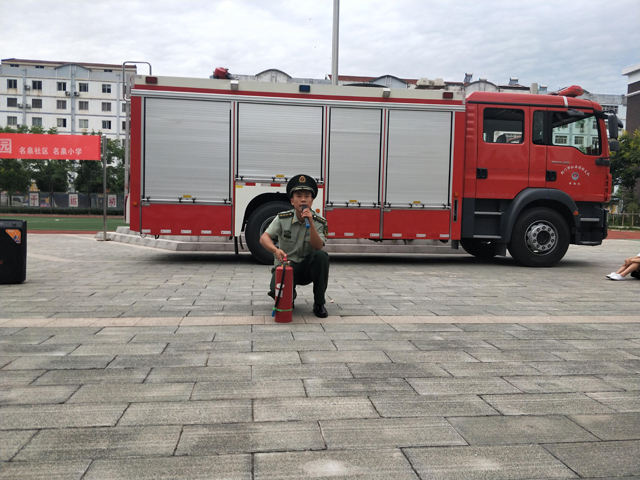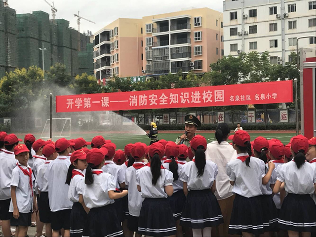 9月6日,名泉社区联合名泉小学开展开学第一课活动,邀请掇刀消防大队特勤中队为学生们普及消防知识。