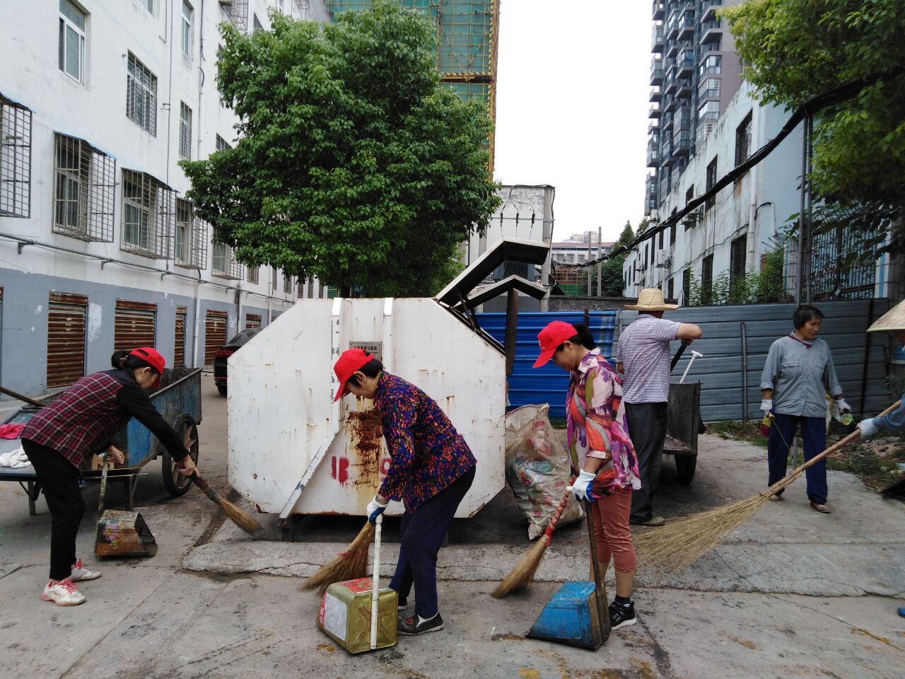 志愿者清洗垃圾箱