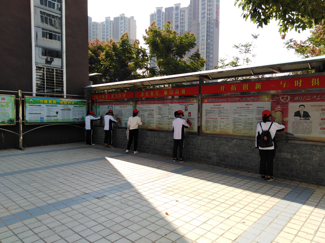 志愿者清洗宣传栏