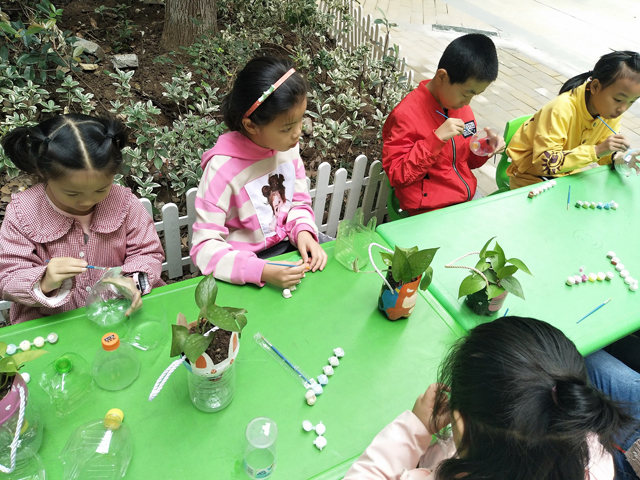 “童梦之家”活动中心自10月9日对外开放以来,每周定期开展各类活动。10月14日,活动中心开展了第一期变废为宝——塑料瓶子大变身活动,吸引了社区20多名孩子的积极参与,他们收集废弃的塑料瓶子,在老师的指导下,根据自己的兴趣,将塑料瓶变成了一个个漂亮的花瓶,别提有多高兴!同时,也懂得垃圾可以回收再利用,提高了环保意识。
