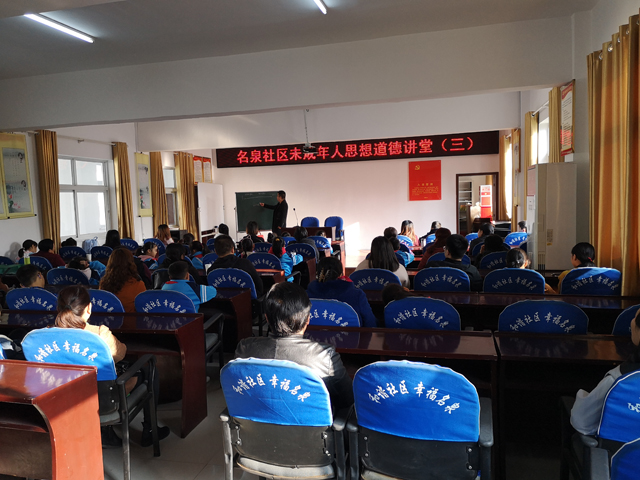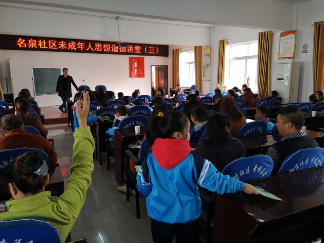 为了加强辖区未成年人思想道德建设,带动青少年求真务实,提高他们的责任感,培育他们的志愿服务意识 ,11月10日上午在名泉社区开展未成年人思想道德讲堂活动,辖区学生、家长及志愿者等共80余人参加了此次活动。