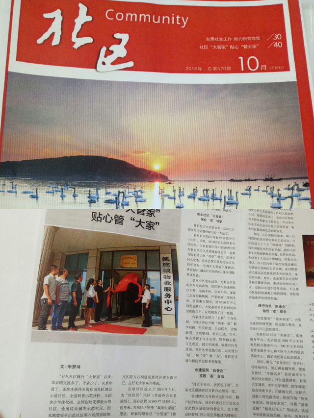 近日,名泉社区“大管家”工作法荣登10月《中国社区》杂志,柔弱女子朱梦诗誉为“社区女强人”为名泉社区青春无悔。