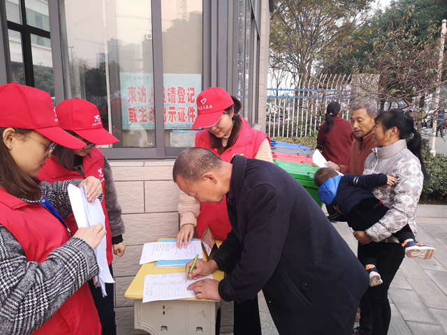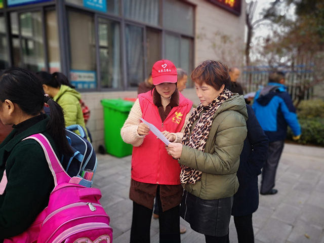 志愿者向市民发放调查问卷