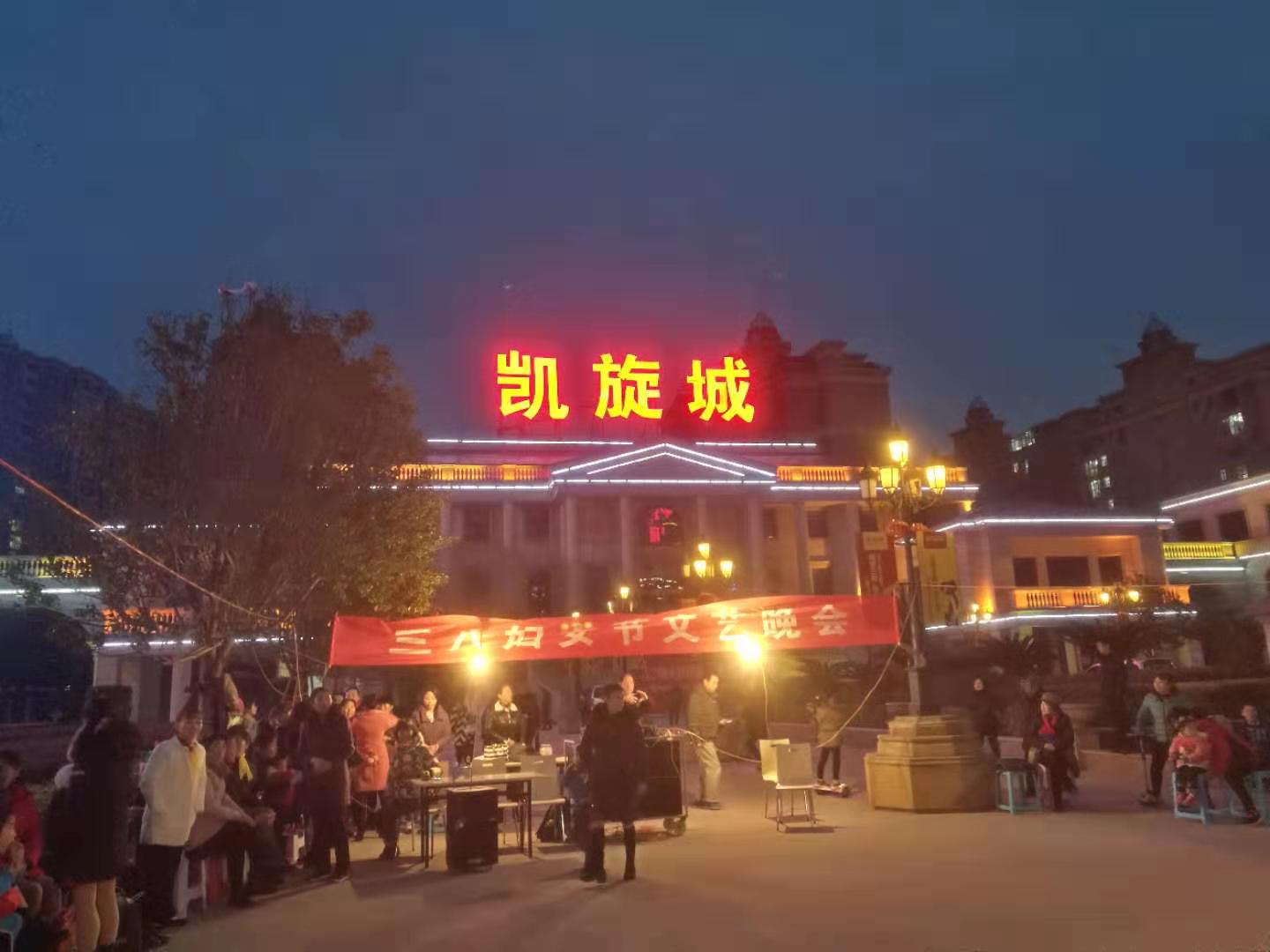 3月7日晚,凯旋城小区雅韵舞蹈社团组织开展“庆三八·舞比幸福”文艺展演活动,来自小区的各位妇女同胞们经过前期的积极排练,为大家展示了自信与舞蹈的魅力。