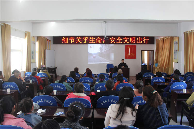3月12日,荆门市公安局交警支队一大队女子中队的交警们开展“细节关乎生命,安全文明出行”为主题的交通安全知识讲座活动走进名泉社区,本次参与活动有“老司机”、“新司机”、“女司机”,还有辖区内因酒驾正在矫正的居民共60余名。
