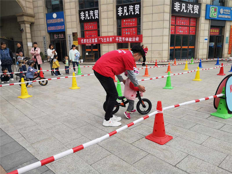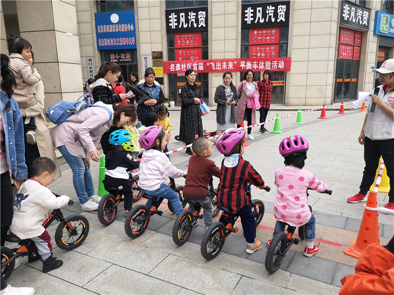 4月21日,名泉社区组织辖区30名幼儿开展“飞出未来”平衡车亲子体验活动。