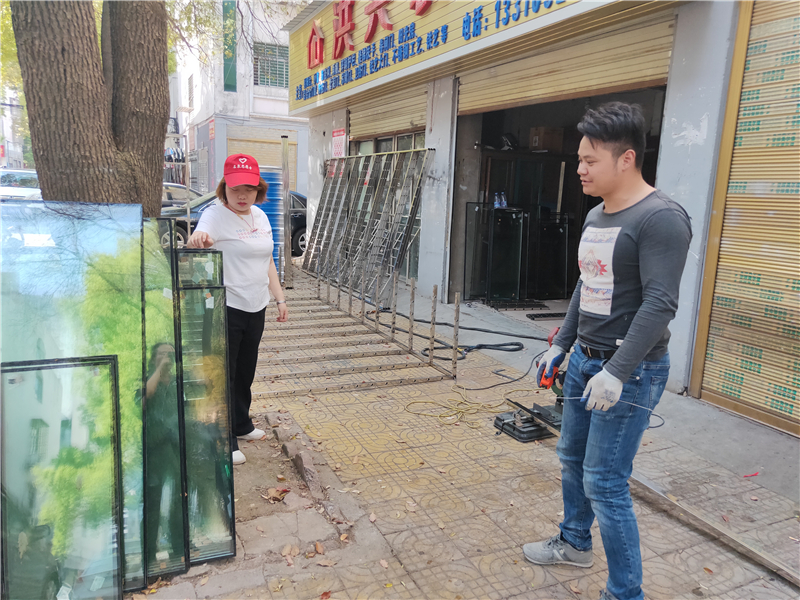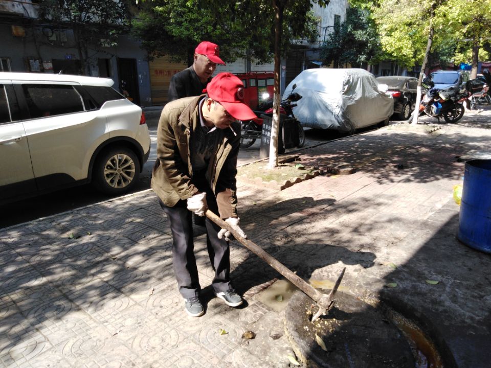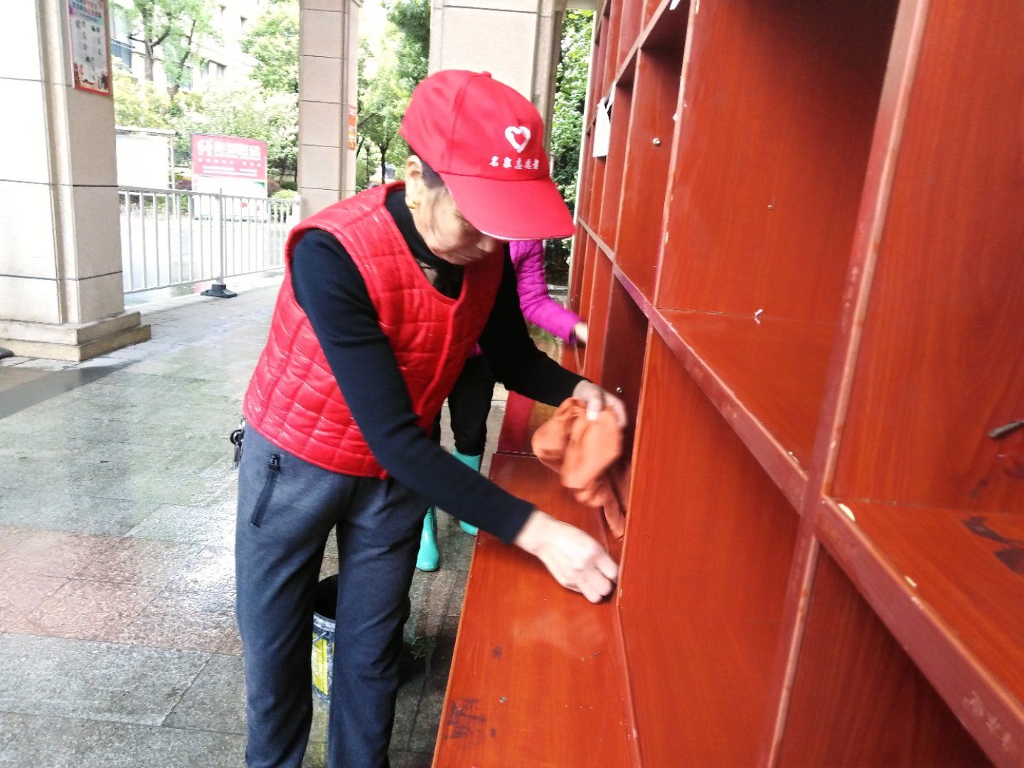 凯旋城志愿者义务清洗小区进户门、置物柜