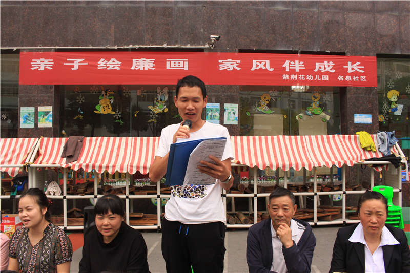 活动在小朋友们与家长的热身互动游戏中开始,在老师的带领下,小朋友们与家长共同诵读一首有关清正廉洁的诗歌《廉洁歌》,诵读几遍后,不少小朋友踊跃上台背诵廉洁诗歌。
