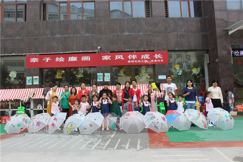 在活动的最后,家长和小朋友们一起动手,在伞上创意出了一幅幅各具特色的“廉画”作品,有“廉花”、“廉叶”、“廉竹”,家长和小朋友们在自己的作品上签上名字,遵守廉洁约定。