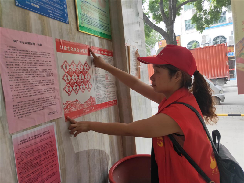 社区志愿者冒着炎热酷暑,对创城存在的问题,立查立改,及时销号。