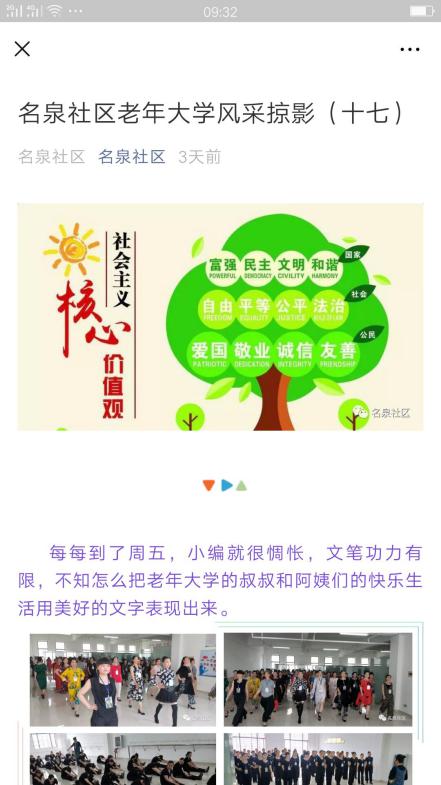 名泉社区利用社区网站、社会微信推送社会主义核心价值观,组织志愿者进小区、楼栋、居民、个体商户宣传社会主义核心价值观,并将社会主义核心价值观融入到社区开展的各项活动中,“党员主题活动日”常规动作中,全体党员诵读社会主义核心价值观;社区工作例会中两委代表背诵社会主义核心价值观;和居民开展各项活动中,将社会主义核心价值观知识融入其中,开展知识竞赛活动,将社会主义核心价值观宣传到家喻户晓。