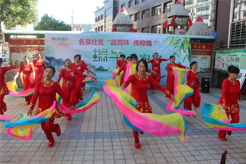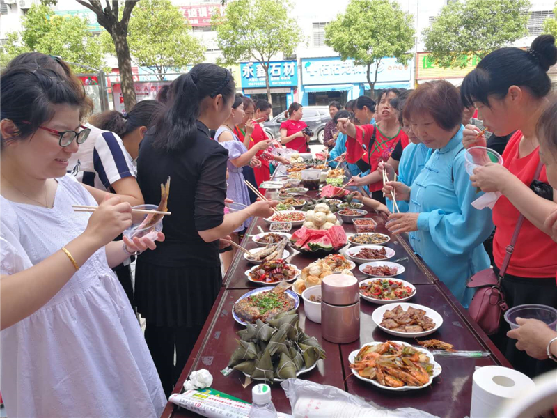 6月6日,在端午节来临之际,名泉社区开展主题为“品百味,传粽情”的端午百家宴活动,辖区居民们载歌载舞,品着亲手做的美食,欢聚一堂共庆端午,共诉“粽”情。
