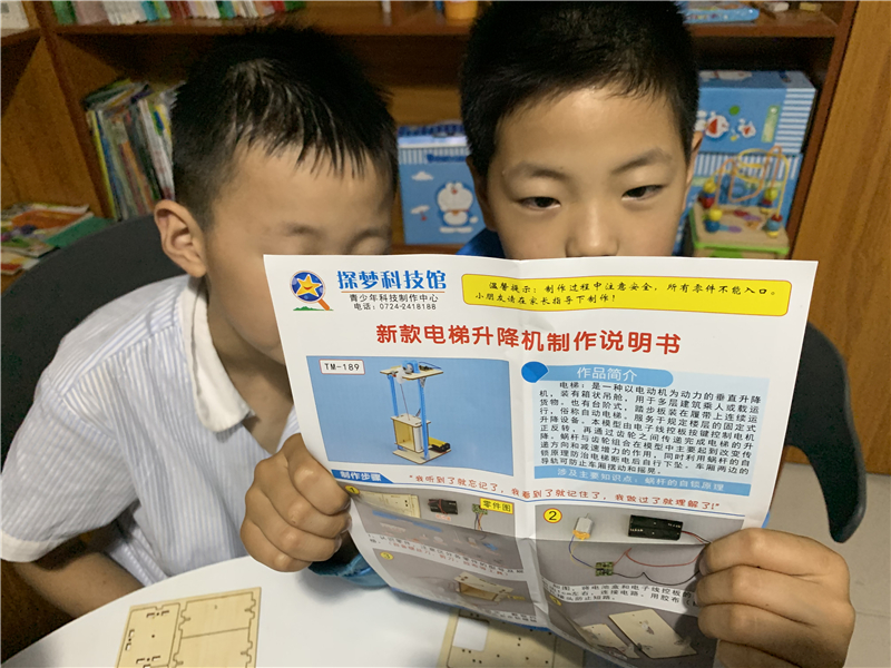 孩子们带着三个问题,认真研读说明书,你一言我一语互相讨论,互相指点,渐渐地手里的零件就组合成了一个小小的电梯模型。通过模型,老师讲解了最主要的知识点:蜗杆的自锁原理。也就是为何电梯断电后能停留在中间不下滑。结合模型,孩子们深刻理解了电梯的工作原理。这次活动,既培养了孩子们的动手能力,又培养了他们的创造性思维能力,还激发了孩子的兴趣和求知欲,可谓一举三得。从制作中,孩子将体验到成功的喜悦,其实重要的并不是得到了什么,而是从中体验到了什么。“童梦之家”一定会在家长和孩子的支持下,办的越来越好!
