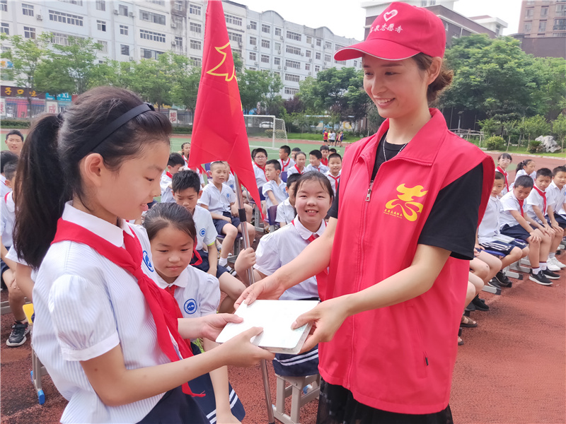 活动现场,社区禁毒志愿者向学生发放青少年禁毒教育读本和宣传手册200余册,并为学生们现场进行讲解。