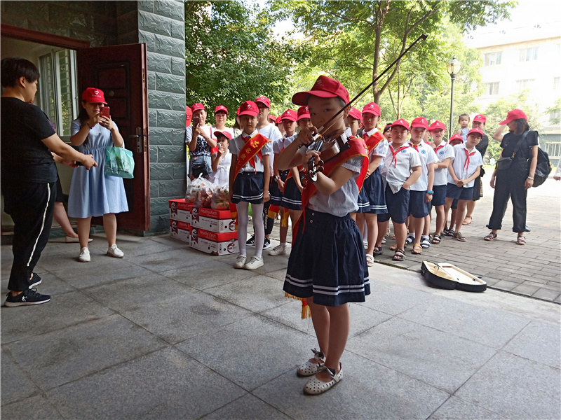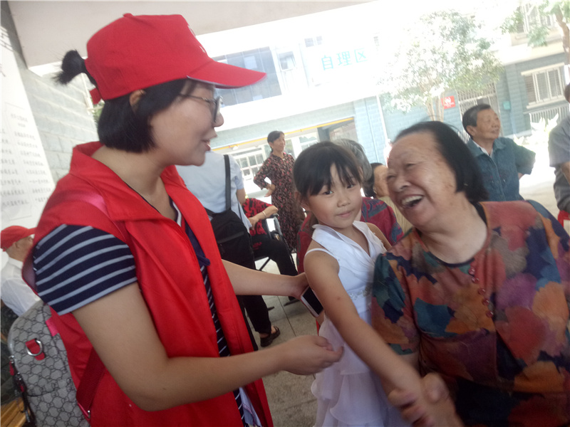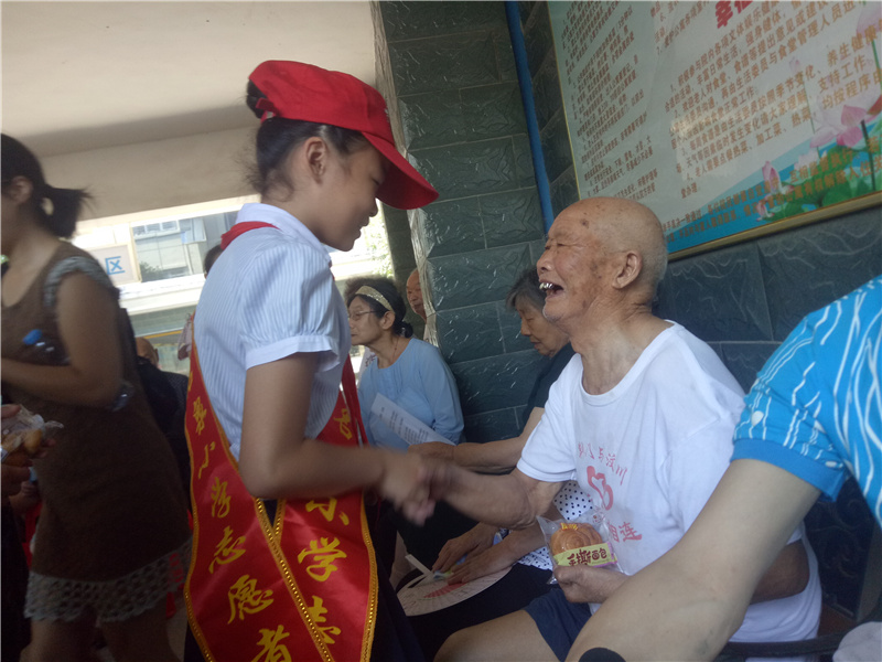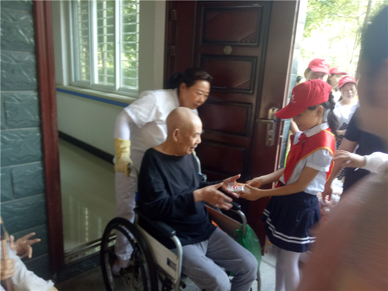 志愿者们自筹600多元资金,购买了四箱水果、两箱面包到敬老院送给老人,表达敬老爱老,回报社会之情怀。志愿者们的到来使原本寂寞的敬老院充满笑声,小志愿者们为老人载歌载舞,有的人表演小 提琴、有的人表演武术、还有的人表演舞蹈,让老人们感爱到社会的温暖,一位八十多岁的老人还主动唱起了社会主义好的歌:“社会主义好,社会主义国家人民地位高,社会主义好,社会社会主义国家人民地位高”勾起了老人的浓浓爱国情怀。