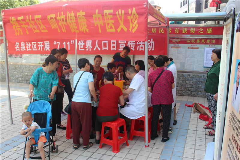 在“7.11世界人口日”来临之际,名泉社区联合掇刀石街道计生办开展“牢记为民初心,共建幸福未来”为主题的宣传活动。活动现场,通过观看宣传片积极传播育新风和健康知识,宣传政府为保障妇女、儿童、青少年等弱势群体权利所作的努力,普及相关惠民政策和健康知识。本次活动共发放宣传品100多份,并邀请中医义诊,包括测血压、测血糖,中西医结合诊治内科疾病,中医特色针灸、推拿、穴位贴敷、艾灸治疗。在此活动期间接诊患者200余人次,耐心细致的为患者解答疑问,发放并向患者宣讲中医预防保健指南。