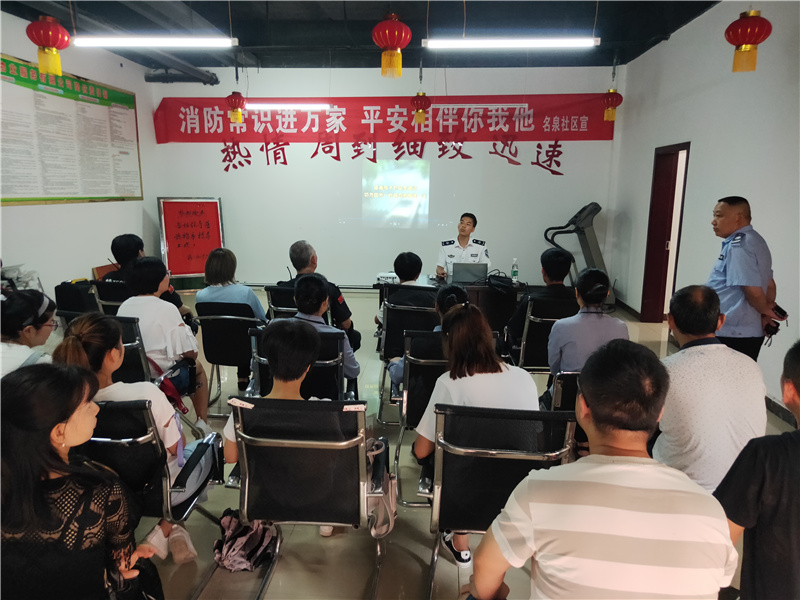 7月17日上午,名泉社区联合掇刀石派出所、政安消防,走进佳信·凯旋城小区开展“消防常识进万家,平安相伴你我他”为主题的消防安全知识宣传活动。