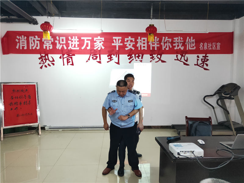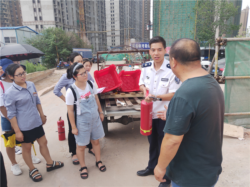 宣传员结合火灾案例,向员工、安保和小区部分业主代表等人员讲解了火灾的成因、初期火灾的扑救措施以及火场逃生和应急互救自救知识和技能,详细讲解示范灭火器的使用方法,并就大家提出的问题逐一进行解答。