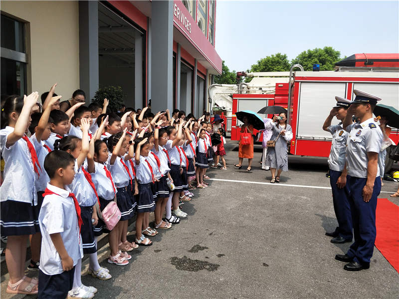 此次活动,社区也为消防支队特勤中队的消防员们送去了消暑物资,青少年们献上少先队礼,感谢消防员的辛勤的付出。
