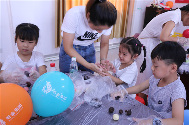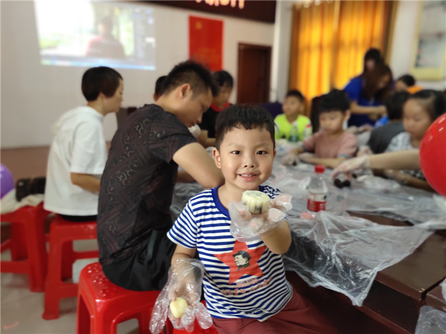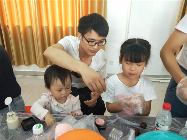 接着就是做月饼环节,孩子和家长们在工作人员的带领下认真的学习,和馅、揉面、擀皮、入馅、入模、出模,不一会儿,一个个外表貌美、馅料多样的冰皮月饼就完成了,孩子与家长们一起共享美好的亲子时光。