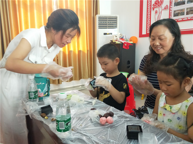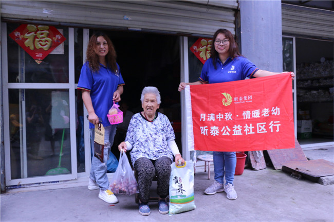 月饼做好后,装入盒中。孩子和家长们将“美胃”又“美心”的月饼送到社区老人的家中,让孩子们也学会关爱老人,传递爱心。昕泰集团也为老人们准备了大米、腊肉、红提葡萄等物资,一并送到老人的手中。