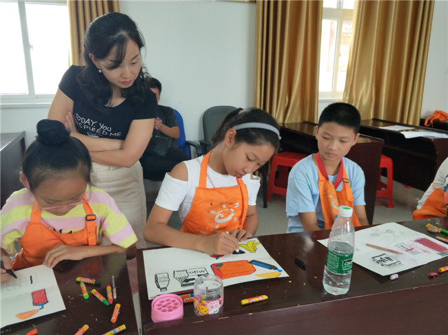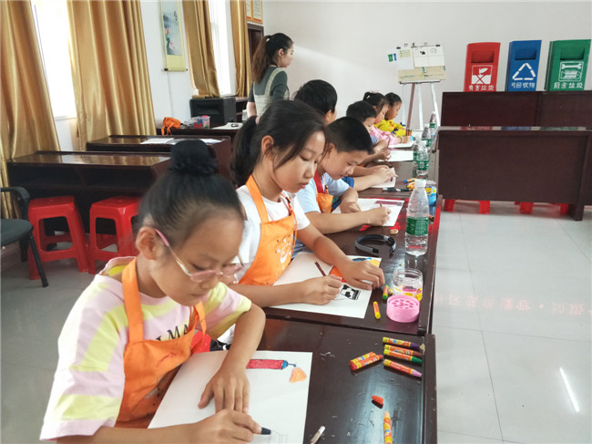 随后,在老师的指导下,青少年们用画笔画出杀虫剂、牛奶盒、鱼骨头、香烟等四类垃圾,上色后并裁剪下来。