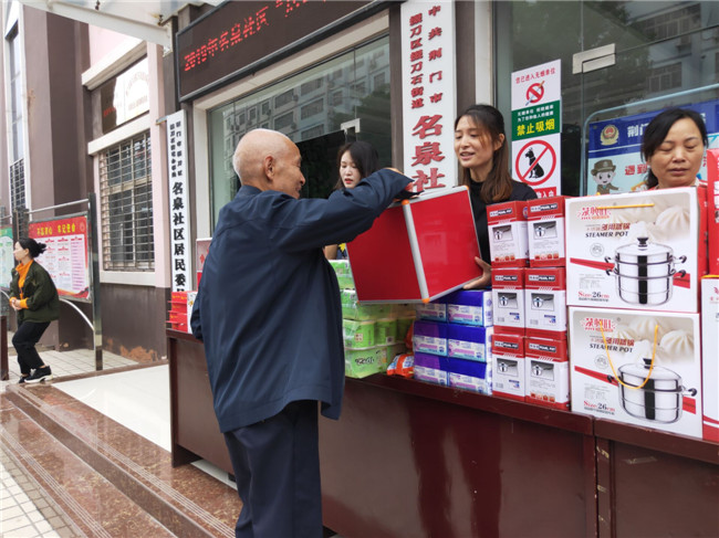 “我的积分换了1袋米”“我换了一桶油”荆门高新区·掇刀区名泉社区的志愿者们领到积分兑换的奖励后高兴地说道。为回馈广大志愿者,激发辖区居民的志愿服务热情,17日上午,名泉社区举办“居民齐参与·积分兑好礼”第三季度积分兑换活动。120多位志愿者根据志愿服务时长积分进行抽奖,兑换到了食用油、袋装米、蒸锅、热水壶、吹风机等日常生活用品。