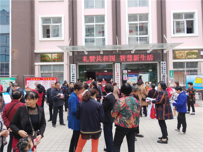 2019年全国科普日,名泉社区联合辖区“大党委”成员单位开展科普活动,发放创城宣传册,宣传创城。