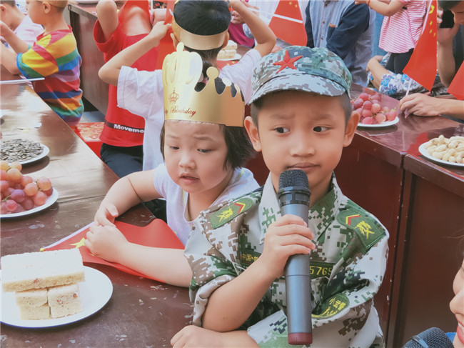 随后,几名学生寿星演唱了《祖国祖国我们爱你》,爱国教育从娃娃抓起。