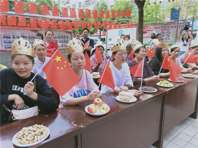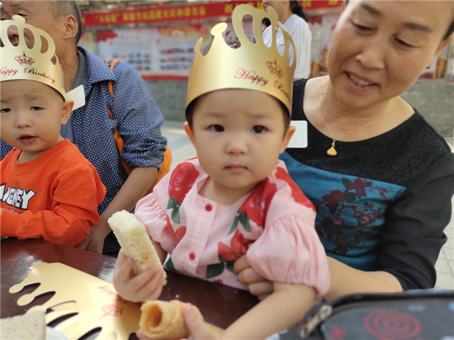 当日9时许,参加集体生日会的居民陆续来到社区,工作人员安排大家就座后,给他们戴上了寿星帽,并给每人发了一面小红旗。9时30分,集体生日宴正式拉开帷幕。